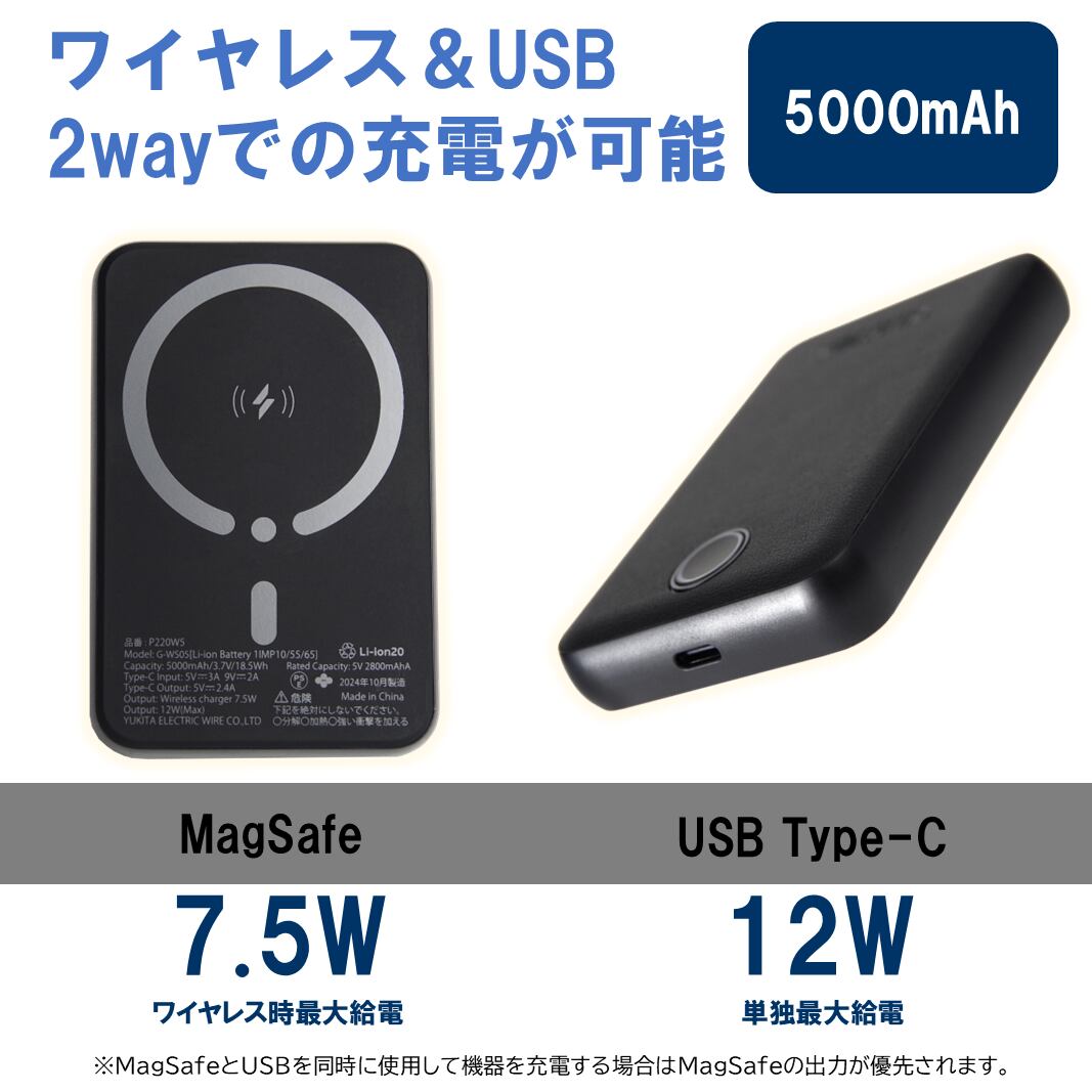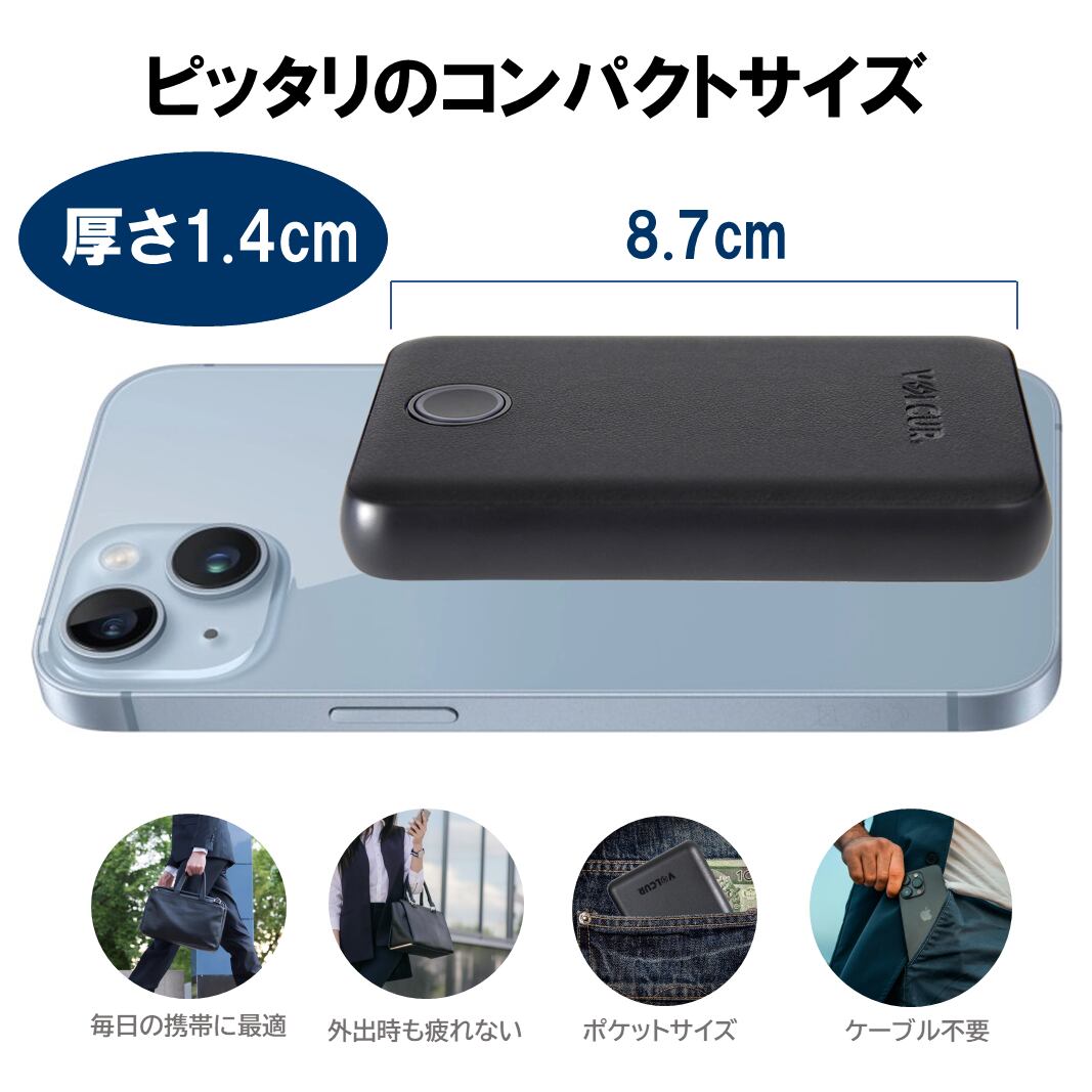 マグネット対応のスマートフォンに装着しワイヤレス充電できるモバイルバッテリー